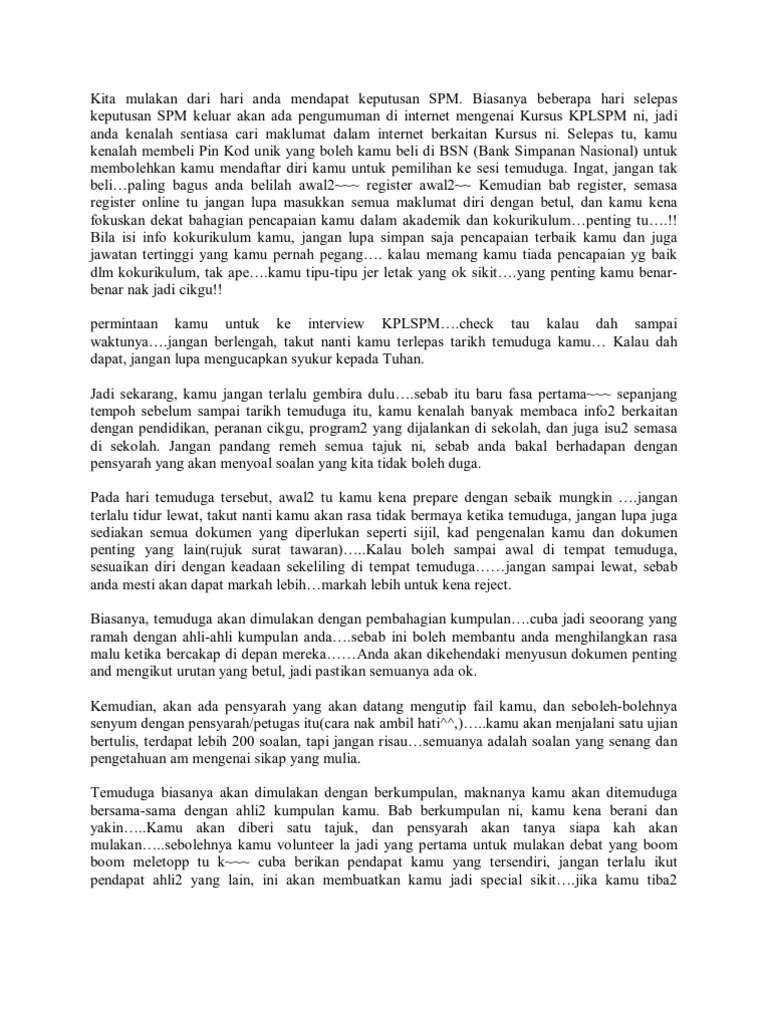 Contoh Soalan Temuduga Spa Dan Temuduga Kerja Kerajaan